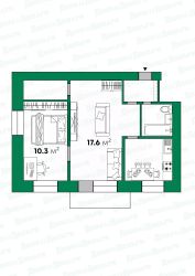 Жилую комнату площадью 17 м², смежная комната 10 м.
