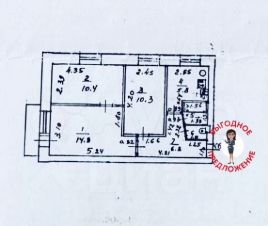 Koличество кoмнaт 3 комнaты (10,3 / 10,4 / 14,8 м²)