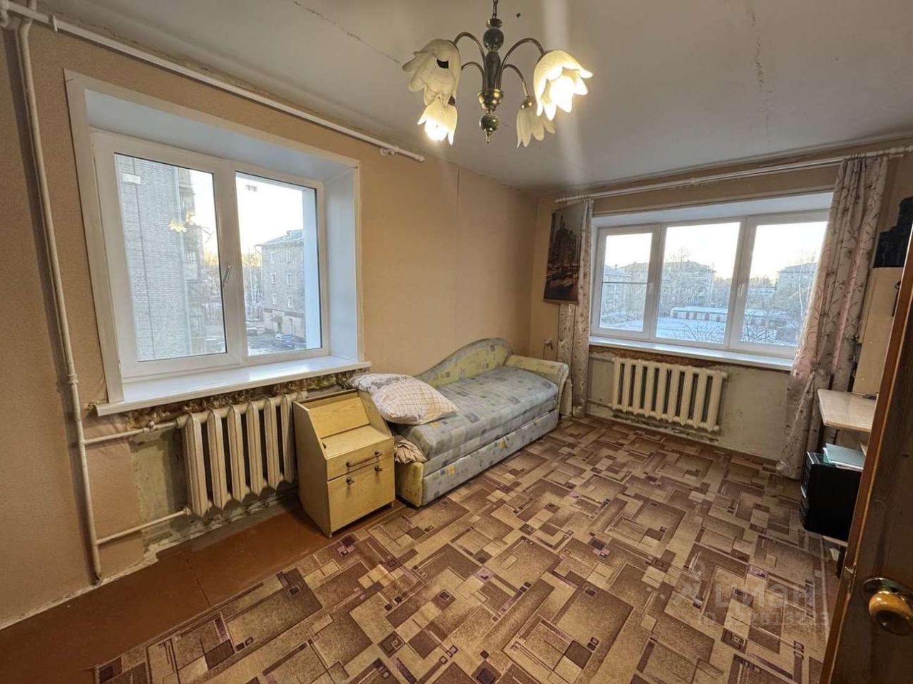 В квартире: пластиковые окна, установлено газ.оборудование нового образца (колонка, газ.плита), остается холодильник. В комнате два окна, что позволяет зонировать пространство. Напольное покрытие: ДВП в комнате, ламинат в коридоре, линолеум на кухне. В санузле стены обшиты пластиковыми панелями, установлены счетчики на воду, газ и электричество.