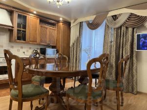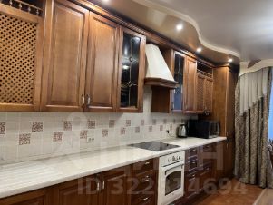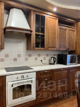 Евротрешка : в гостиной кухня из массива дерева и раздвижной обеденный стол с комплектом стульев из тоже из массива производства Италия ; диван из натуральной кожи раскладной, духовой шкаф, плита, холодильник, вытяжка, стиральная машина, телевизор.