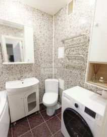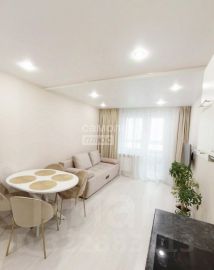 Состояние квартиры отличное. Ранее в квартире был выполнен Евро-ремонт: ламинат, керамическая плитка, обои, натяжные потолки. Установлены: пластиковые окна, точечные светильники, гардины, шторы, счетчики на воду, межкомнатные двери, кухонный гарнитур. У квартиры отличная и современная планировка: просторная кухня-гостиная с выходом на застеклённую лоджию, комната с выходом на вторую застеклённую лоджию, совмещенный сан.узел, прихожая. Квартира светлая, тёплая, не угловая;