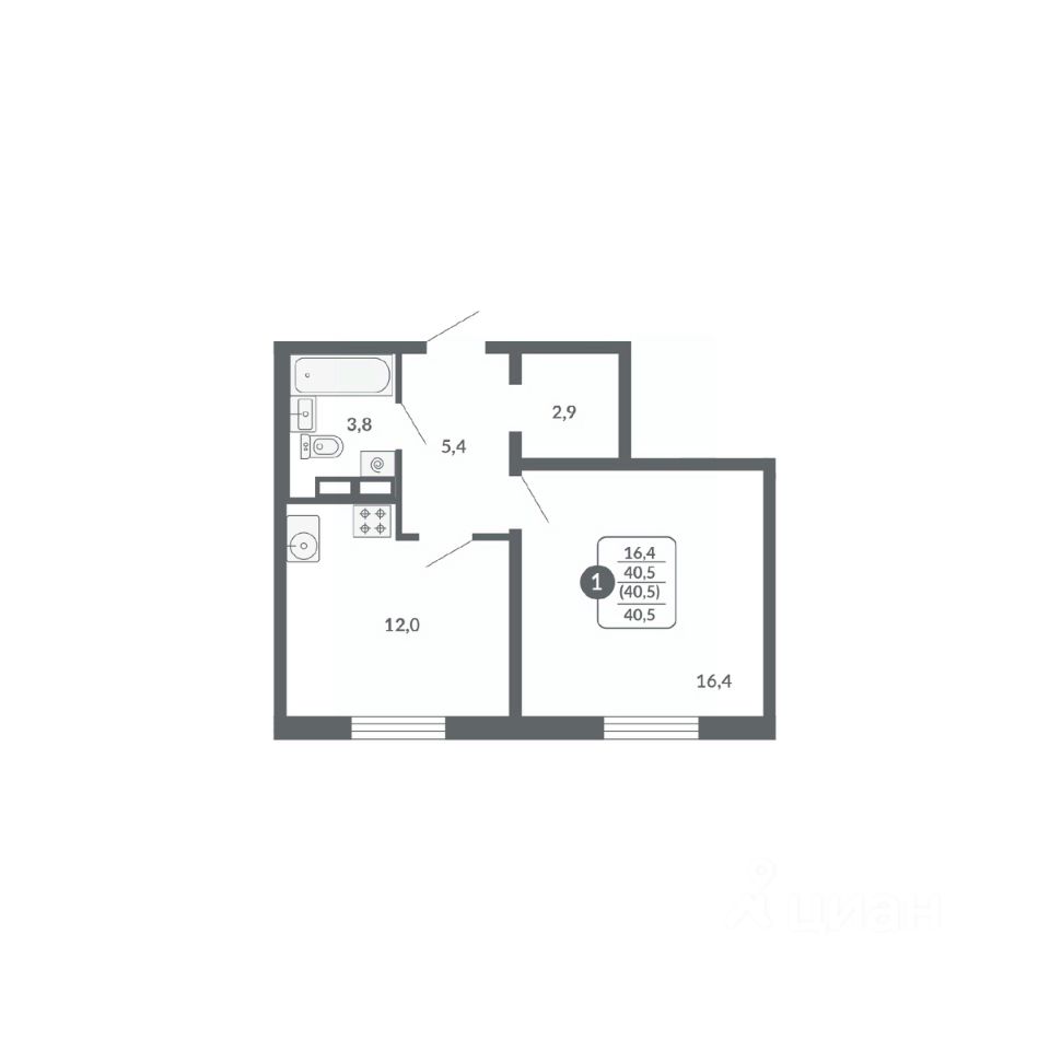 Общая площадь40,5 м²