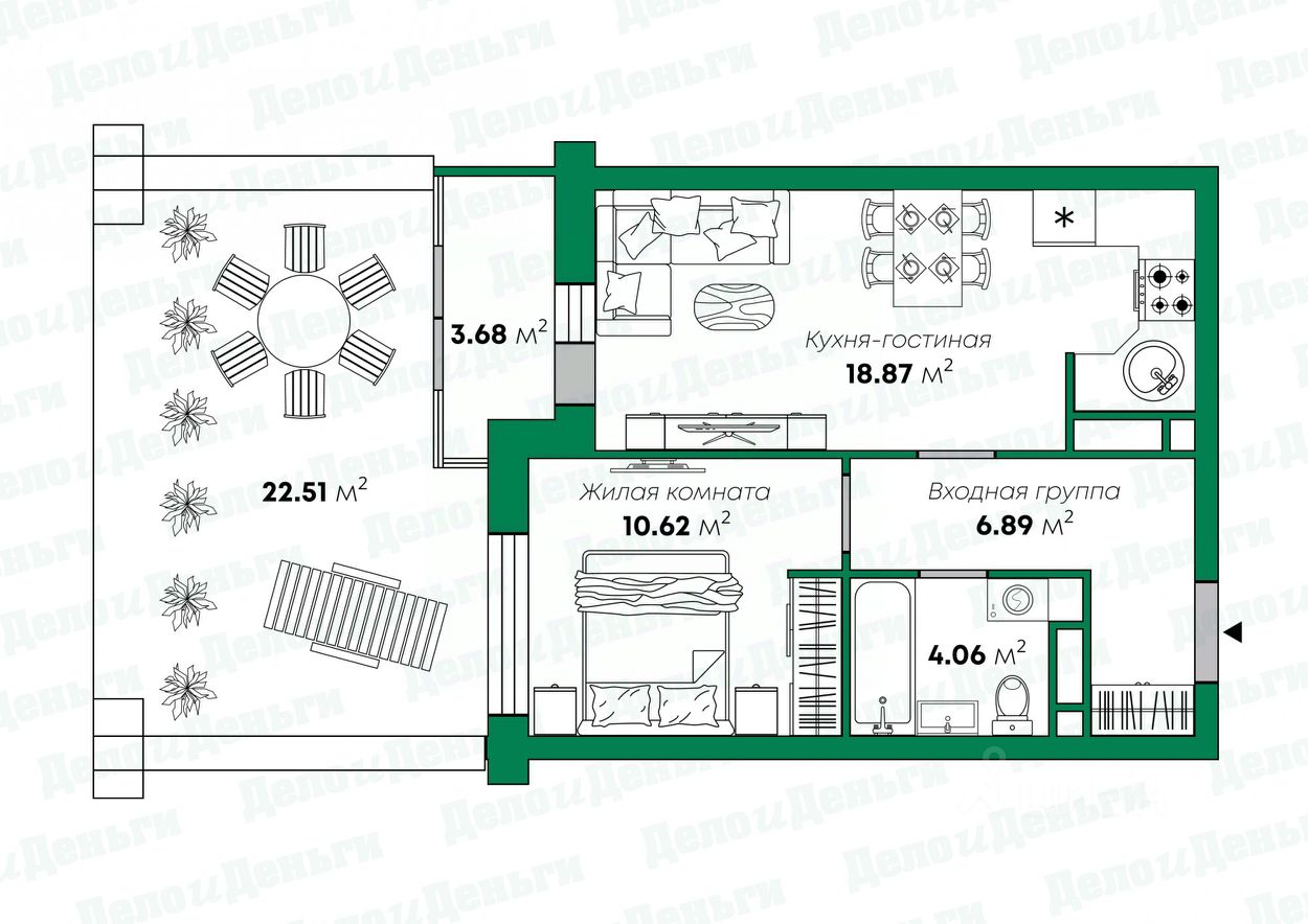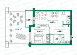 В продаже уникальная евро-двухкомнатная квартира с террасой в доме комфорт-класса от надежного застройщика Железно.