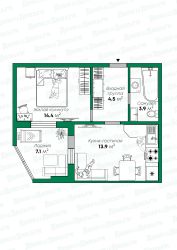 Просторную кухню-столовую, объединённую с гостиной площадью 13,9 м²
