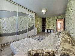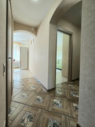 Состояние квартиры отличное. В квартире выполнен законченный Евро-ремонт: ламинат, керамическая плитка, натяжные потолки, на стенах обои (винил на флизелине). Установлены: пластиковые окна, межкомнатные двери, сан.техника, чугунные радиаторы отопления, счетчики на воду, точечные светильники, железная входная дверь, мебель, техника.