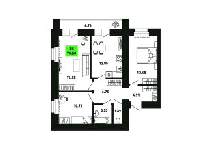 Продается 3-комнатная квартира на 5 этаже, площадью 73.68 квадратных метра. Сдача дома - 2 квартал 2027 года.