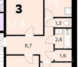 * Идеальная планировка, изолированные комнаты: 17,8; 12,4; 10,0 м2.