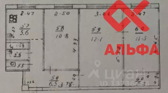 В продаже 3 комнатная квартира общей площадью 57 кв.м по адресу- ул. Чернышевского, д. 6.