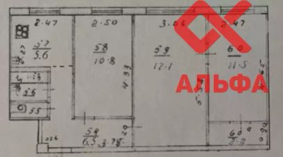 3 комнаты- 17,1, 11,5 и 10,8 кв.м. Кладовка площадью 2,2 кв.м.