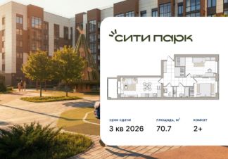 3-комнатная, 70.7 м², 87 по адресу Парковая, 1б Тип дома: Кирпич. Жилой комплекс "Сити Парк"Преимущества покупки квартиры в новостройке напрямую от застройщика КСМ: