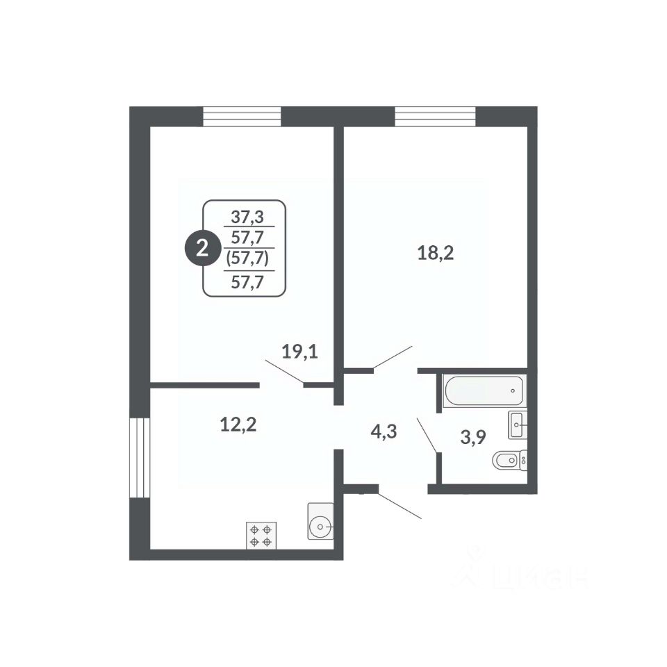 Общая площадь57,7 м²