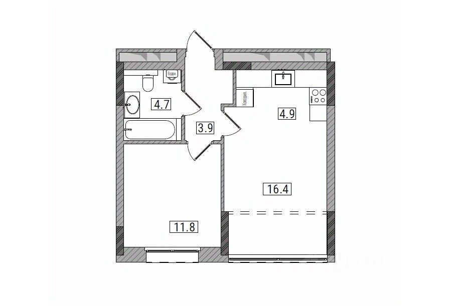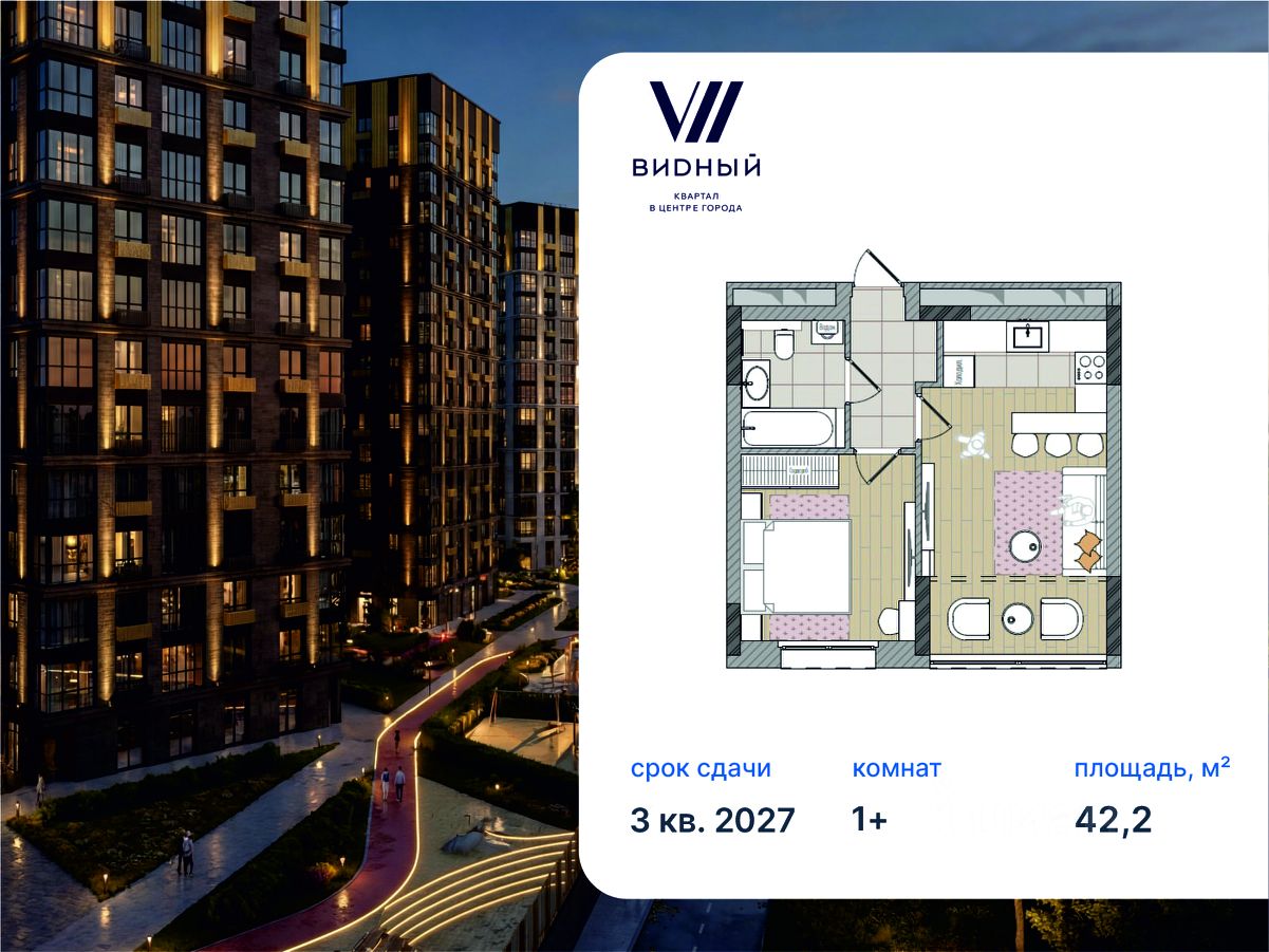 2-комнатная, 42.2 м², 141 по адресу Мелькомбинатовский, 3 Тип дома: Монолит. Жилой комплекс "Видный"Преимущества покупки квартиры в новостройке напрямую от застройщика КСМ: