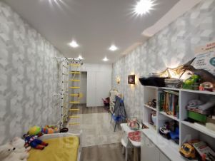 Продаю 3 комнатную квартиру индивидуальной планировки . Просторная кухня- гостиная в современном качественном ремонте : новый кухонный гарнитур с бытовой техникой , обеденная зона с подсветкой.  Уютная теплая спальня для родителей с новой корпусной мебелью . Светлая и очень красивая детская комната с вместительным шкафом .В квартире есть застекленный балкон . Квартира расположена на 5 этаже , что обеспечит вам тишину сверху , новая крыша в доме. Квартира - распашонка , очень светлая и уютная,  комнаты на разные стороны.  Имеется гарбероб , что по достоинству оценит семья с детьми. Совмещенный просторный санузел с теплым полом . Новая проводка, кварцвинил по всей квартире. Идеальное расположение  : во дворе дома детские сады и школа , спортивная школа напротив и  парк для прогулок всей семьёй !  Современная квартира с ремонтом и мебелью для семьи с детьми ! Звоните !