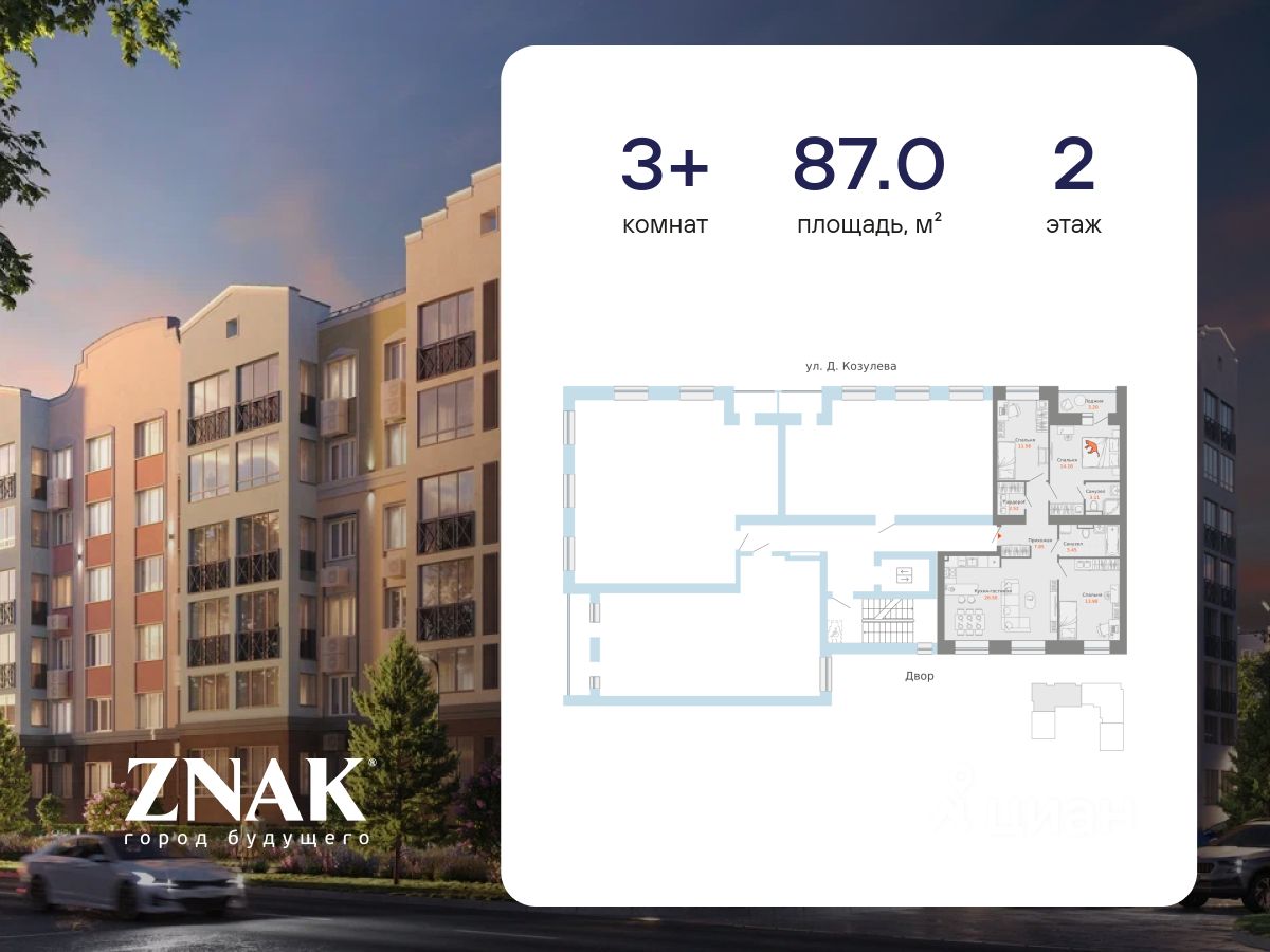 Продается 3-комнатная квартира в 3 км от Зубаревского леса, площадью 87.00 кв. м. Квартира находится в жилом комплексе комфорт-класса ZNAK от девелопера "Железно".