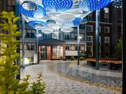 - Трехуровневое освещение и архитектурная подсветка преображает ночной облик всего комплекса.
