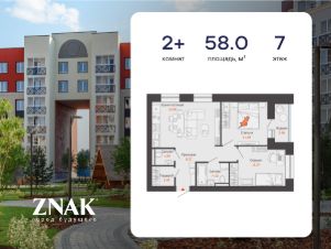 Продается 2-комнатная квартира в 3 км от Зубаревского леса, площадью 58.00 кв. м. Квартира находится в жилом комплексе комфорт-класса ZNAK от девелопера "Железно".