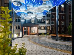 - Трехуровневое освещение и архитектурная подсветка преображает ночной облик всего комплекса.