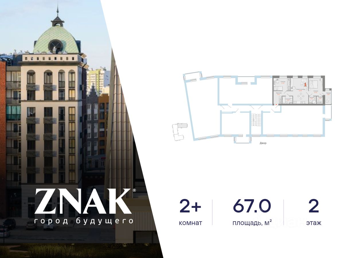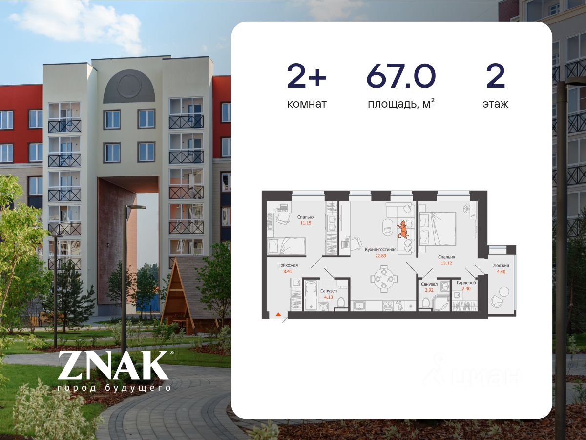 Продается 2-комнатная квартира в 3 км от Зубаревского леса, площадью 67.00 кв. м. Квартира находится в жилом комплексе комфорт-класса ZNAK от девелопера "Железно".