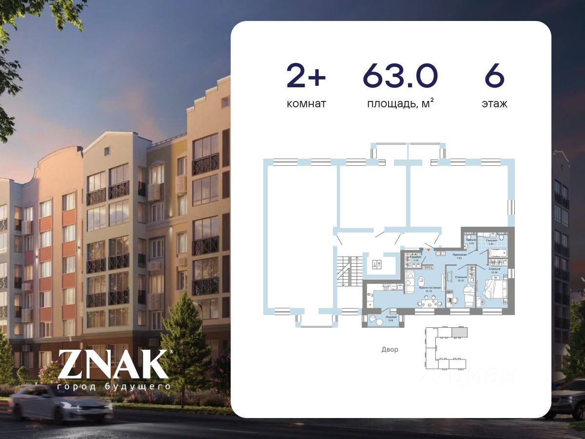 Продается 2-комнатная квартира в 3 км от Зубаревского леса, площадью 63.00 кв. м. Квартира находится в жилом комплексе комфорт-класса ZNAK от девелопера "Железно".