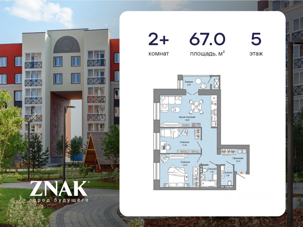Продается 2-комнатная квартира в 3 км от Зубаревского леса, площадью 67.00 кв. м. Квартира находится в жилом комплексе комфорт-класса ZNAK от девелопера "Железно".