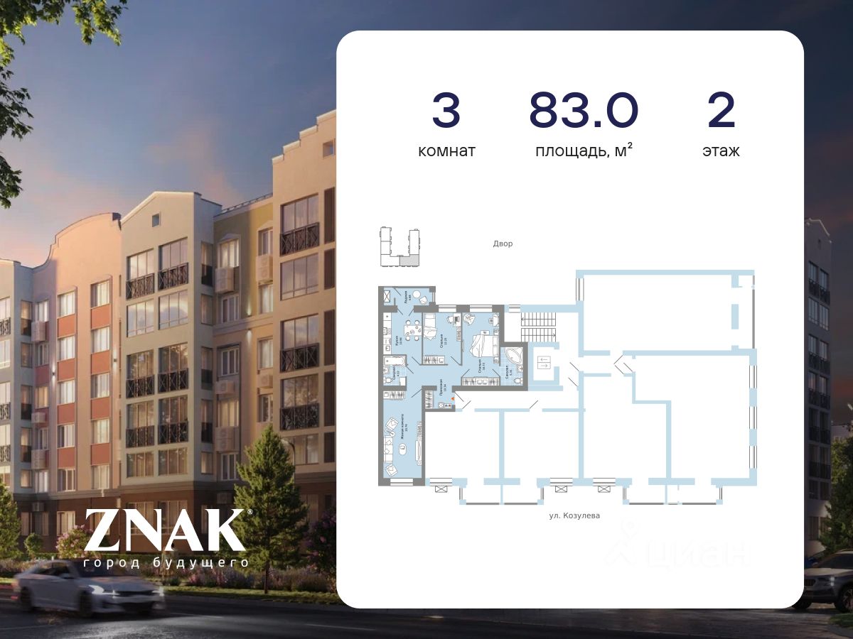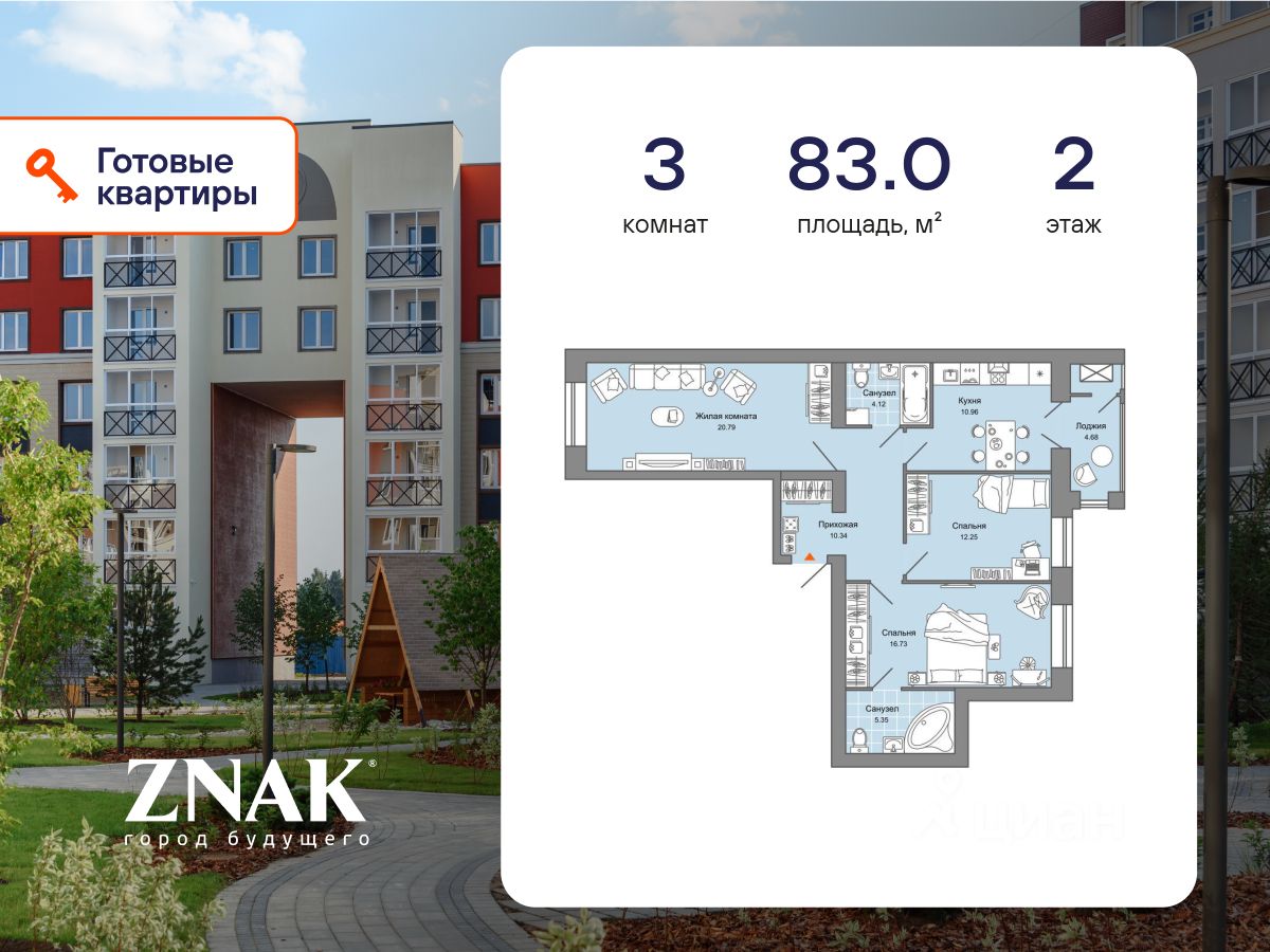 Продается 3-комнатная квартира в 3 км от Зубаревского леса, площадью 83.00 кв. м. Квартира находится в жилом комплексе комфорт-класса ZNAK от девелопера "Железно".