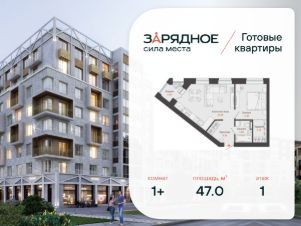 Продается 1-комнатная квартира, корпус 4/2, площадь 47.00 кв. с предчистовой отделкой. Квартира находится в жилом комплексе комфорт-класса "Зарядное" (ГК "Железно").
