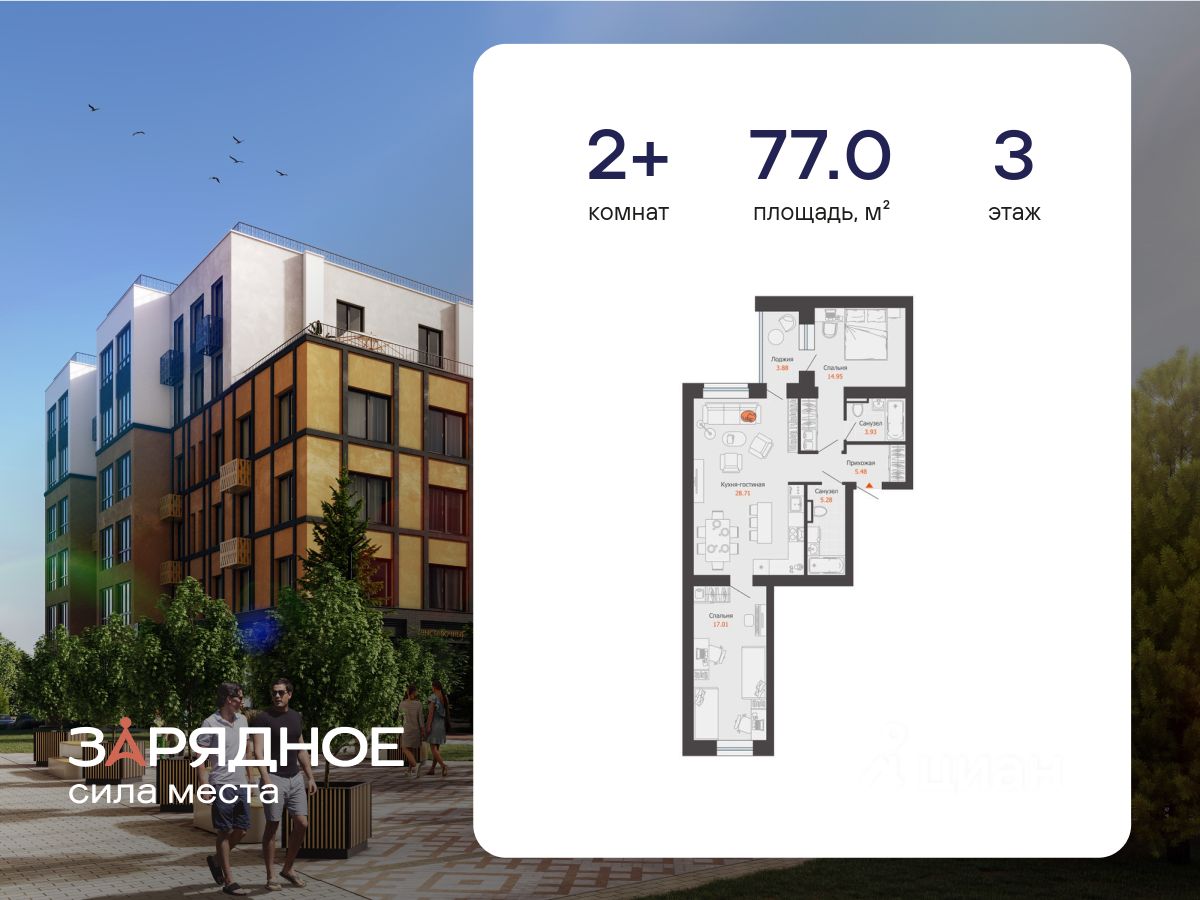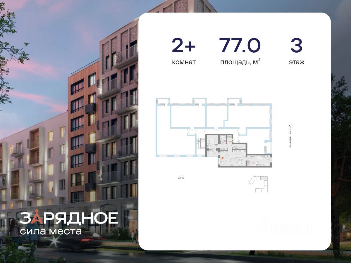 Продается 2-комнатная квартира, корпус 4/2, площадь 77.00 кв. Квартира находится в жилом комплексе комфорт-класса "Зарядное" (ГК "Железно").