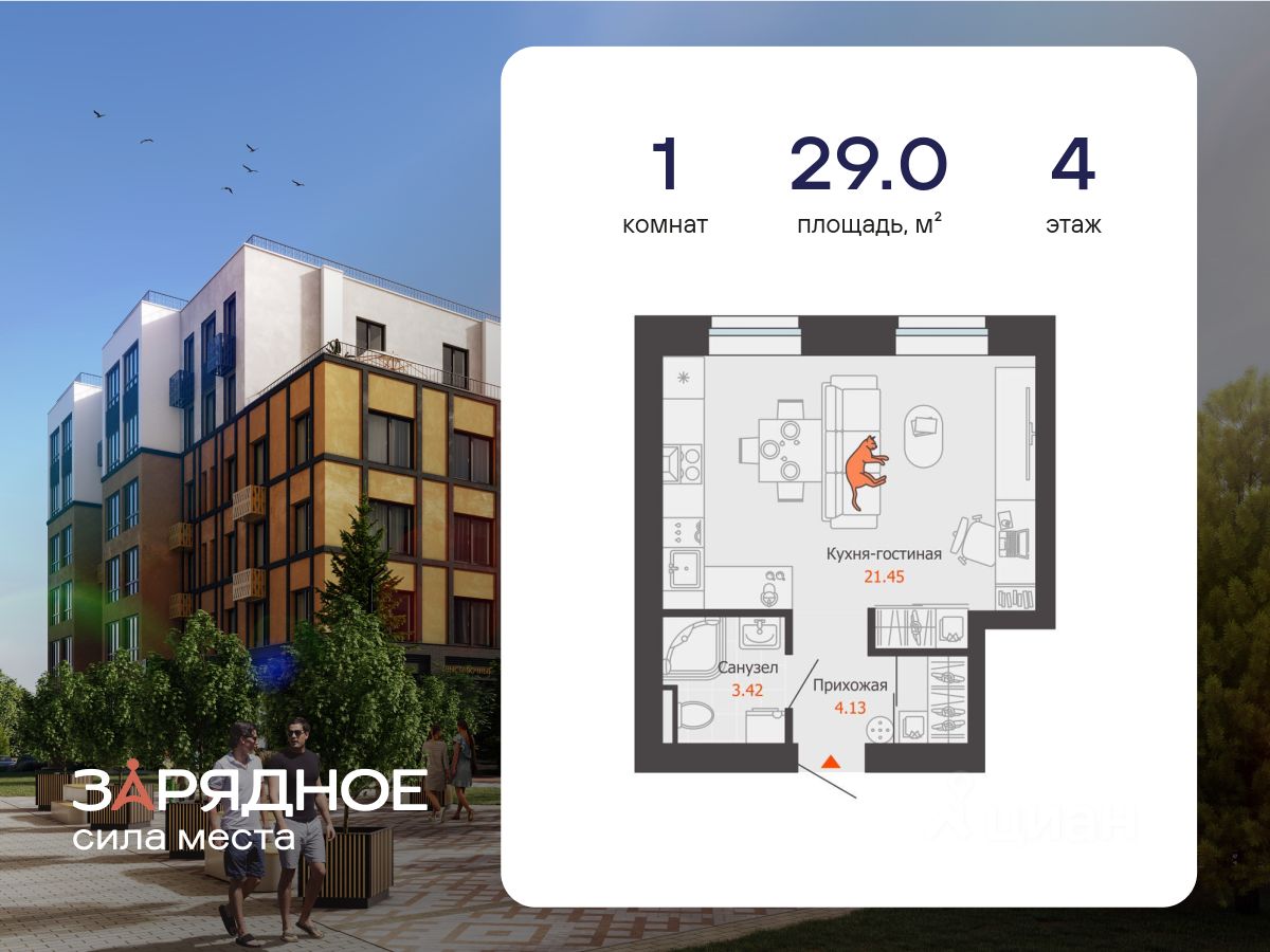 Продается студия, корпус 4/2, площадь 29.00 кв. Квартира находится в жилом комплексе комфорт-класса "Зарядное" (ГК "Железно").