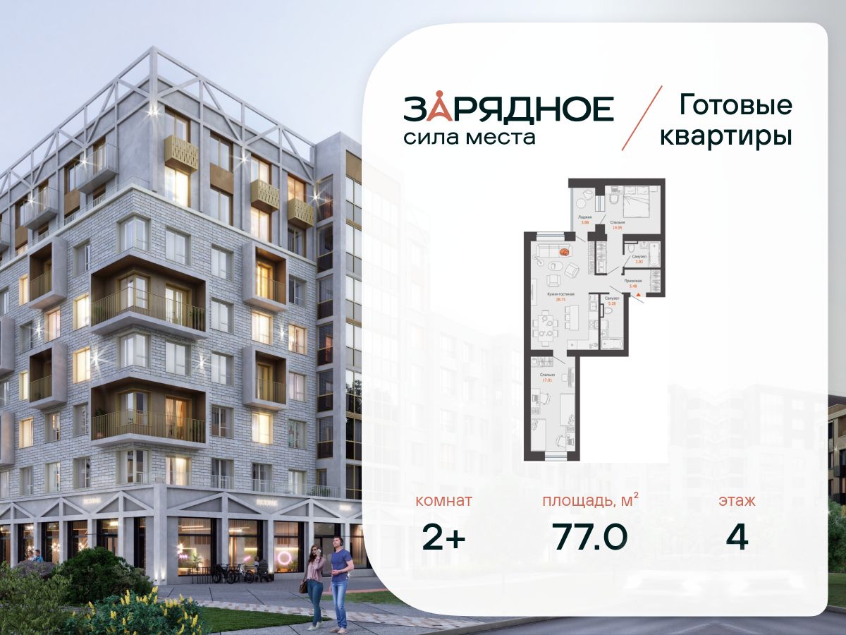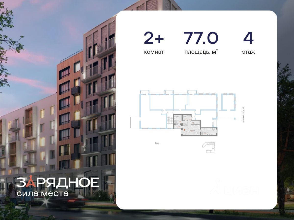 Продается 2-комнатная квартира, корпус 4/2, площадь 77.00 кв. Квартира находится в жилом комплексе комфорт-класса "Зарядное" (ГК "Железно").