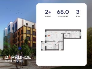 Продается 2-комнатная квартира, корпус 4/2, площадь 68.00 кв. Квартира находится в жилом комплексе комфорт-класса "Зарядное" (ГК "Железно").