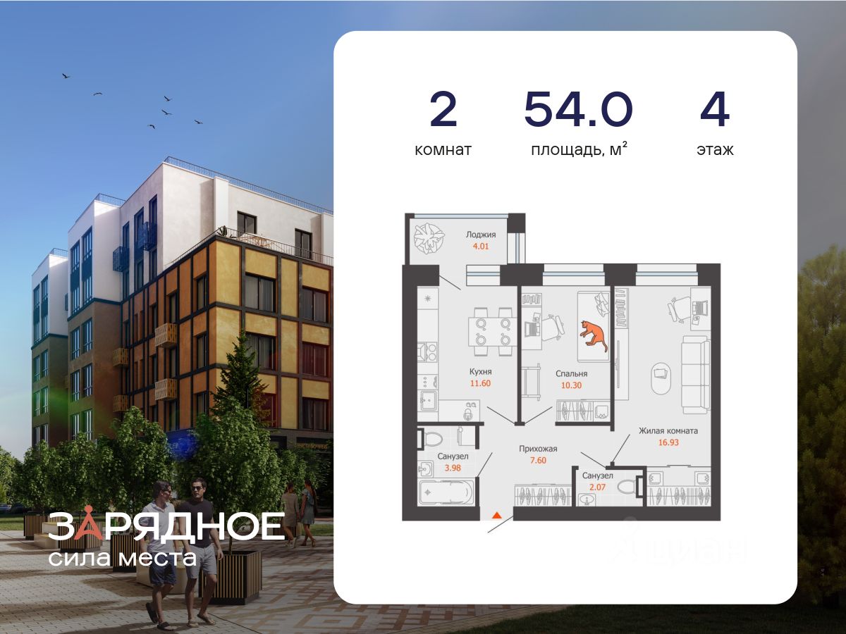 Продается 2-комнатная квартира, корпус 4/2, площадь 54.00 кв. Квартира находится в жилом комплексе комфорт-класса "Зарядное" (ГК "Железно").
