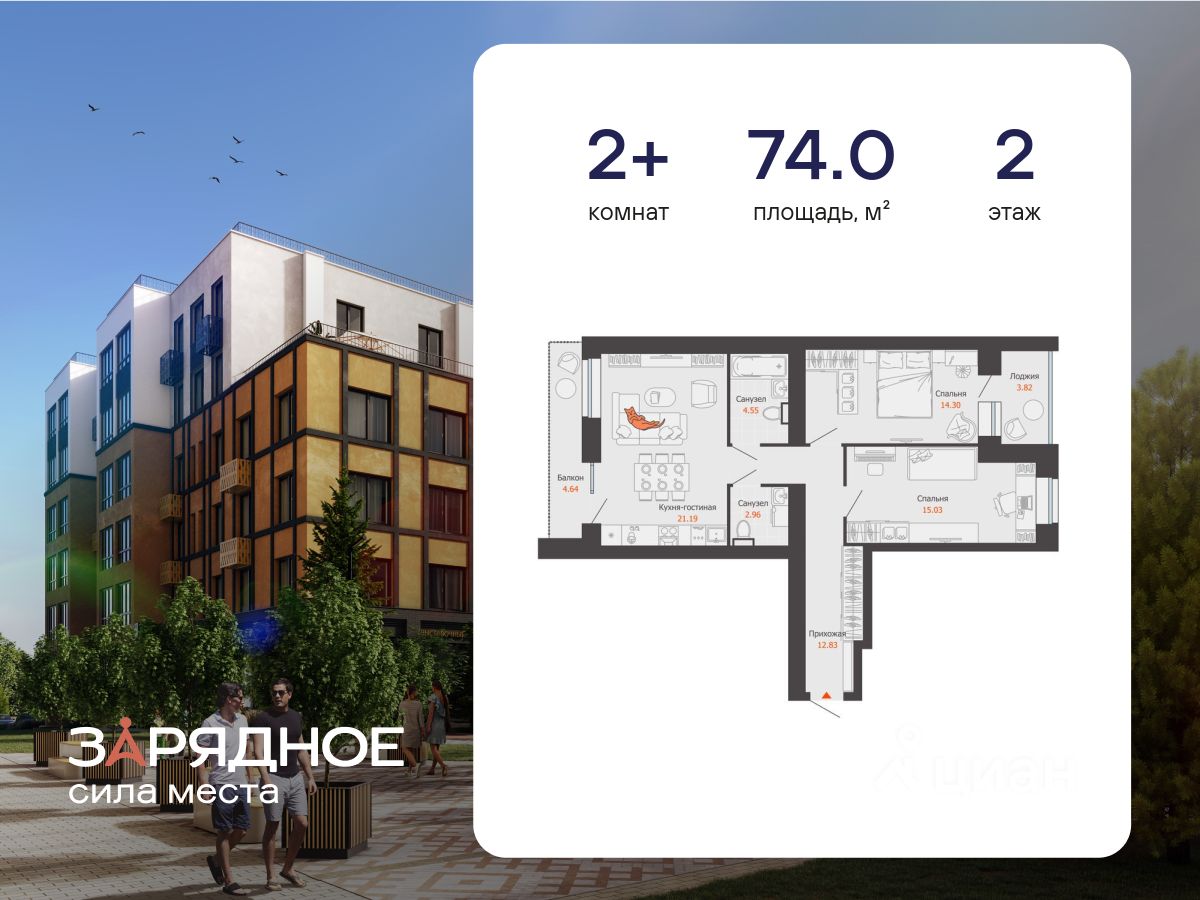 Продается 2-комнатная квартира, корпус 4/2, площадь 74.00 кв. Квартира находится в жилом комплексе комфорт-класса "Зарядное" (ГК "Железно").