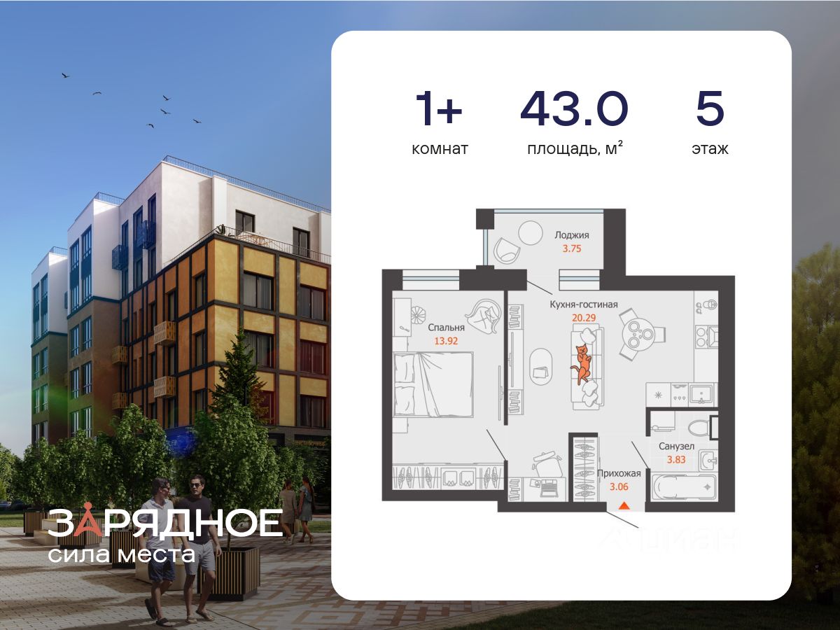 Продается 1-комнатная квартира, корпус 4/2, площадь 43.00 кв. Квартира находится в жилом комплексе комфорт-класса "Зарядное" (ГК "Железно").