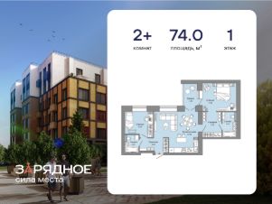 Продается 2-комнатная квартира, корпус 2, площадь 74.00 кв. Квартира находится в жилом комплексе комфорт-класса "Зарядное" (ГК "Железно").