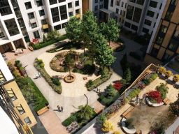 При благоустройстве комплекса особое место было отведено общественным пространствам: