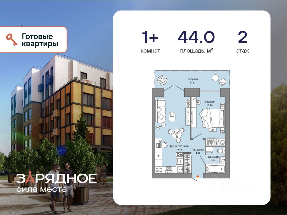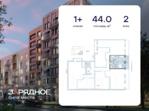Продается 1-комнатная квартира, корпус 1, площадь 44.00 кв. Квартира находится в жилом комплексе комфорт-класса "Зарядное" (ГК "Железно").