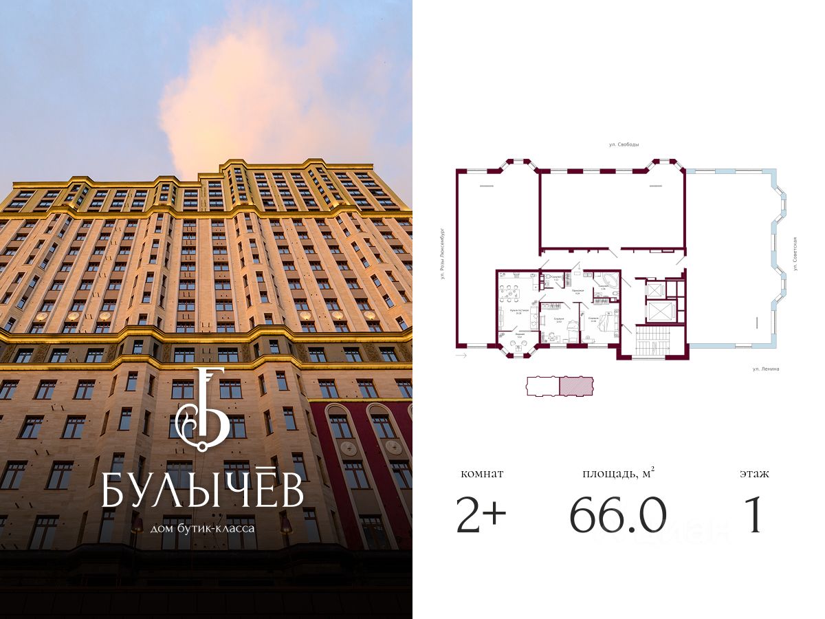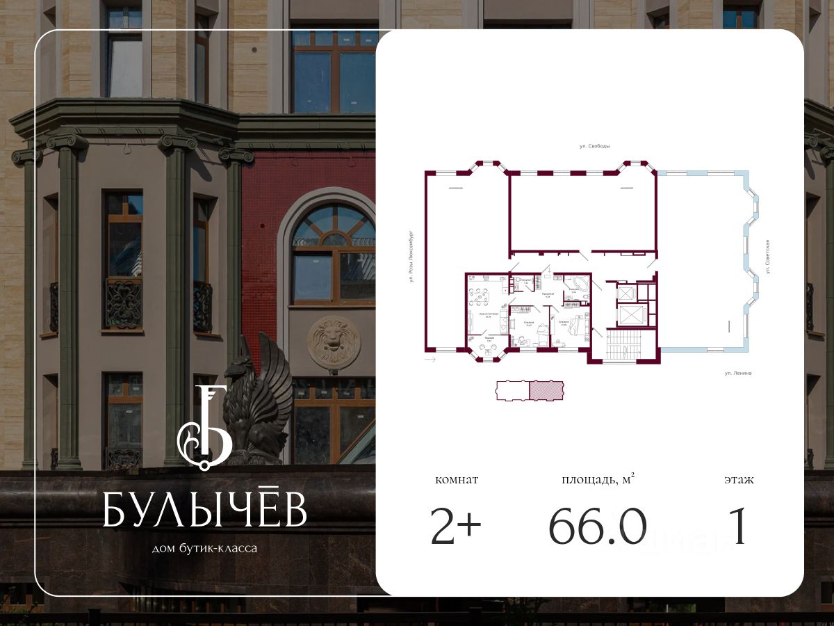 Продается 2-комнатная квартира, площадью 66.00 кв. м. Квартира находится в доме "Булычёв", расположенном в самом сердце Кирова, рядом с набережной Грина. Застройщик проекта - федеральный девелопер "Железно".