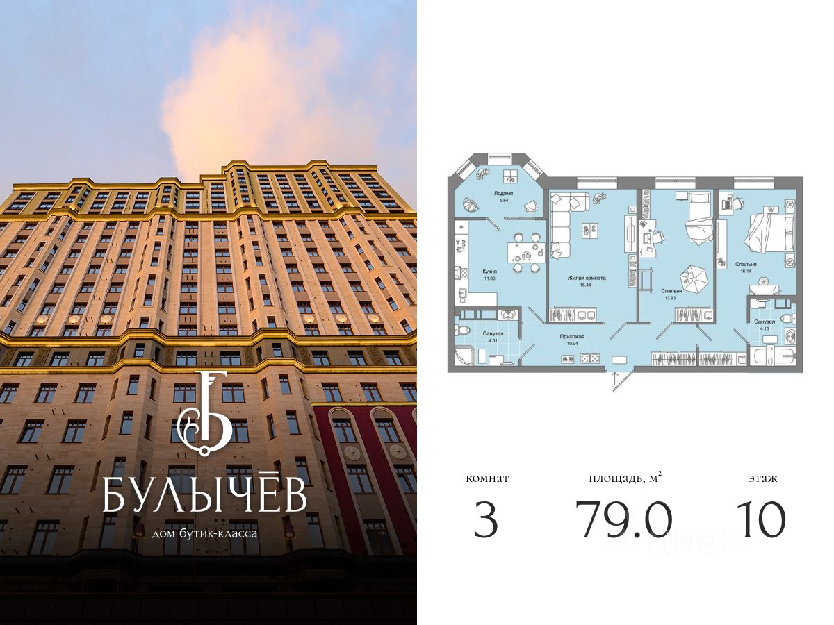 Продается 3-комнатная квартира, площадью 79.00 кв. м. Квартира находится в доме "Булычёв", расположенном в самом сердце Кирова, рядом с набережной Грина. Застройщик проекта - федеральный девелопер "Железно".