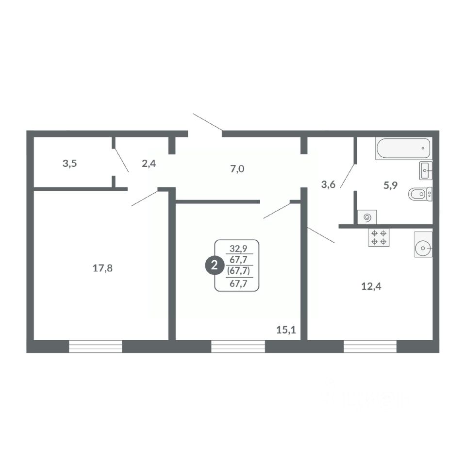 Общая площадь67,7 м²
