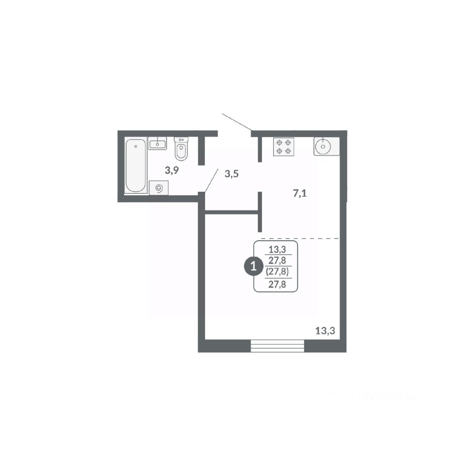 Общая площадь27,8 м²