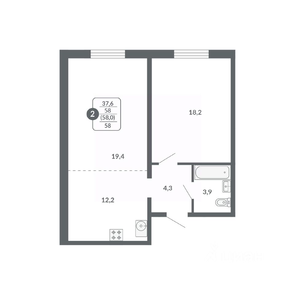 Общая площадь58 м²