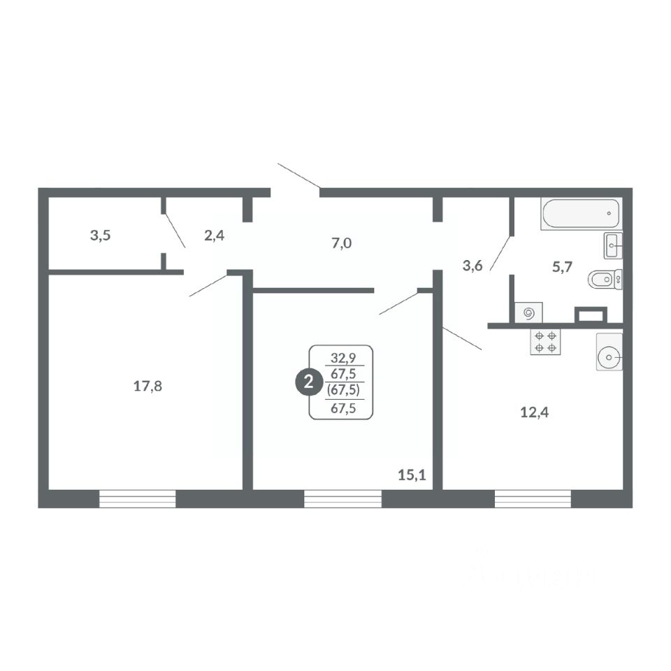 Общая площадь67,5 м²