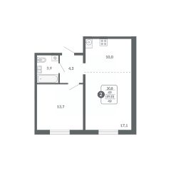 Жилая площадь30,8 м²