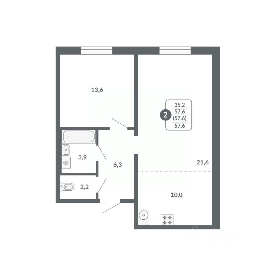 Общая площадь57,6 м²