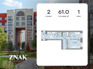 Продается 2-комнатная квартира в 3 км от Зубаревского леса, площадью 61.00 кв. м. Квартира находится в жилом комплексе комфорт-класса ZNAK от девелопера "Железно".