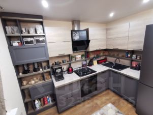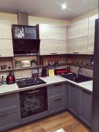 #Кухня 10.3 кв.м.- кухонный гарнитур по индивидуальному заказу, варочная панель Bosch, шкаф духовой Bosch (новый, не пользовались),вытяжка Bosch, холодильник Haier в цвет кухни, стол обеденный.