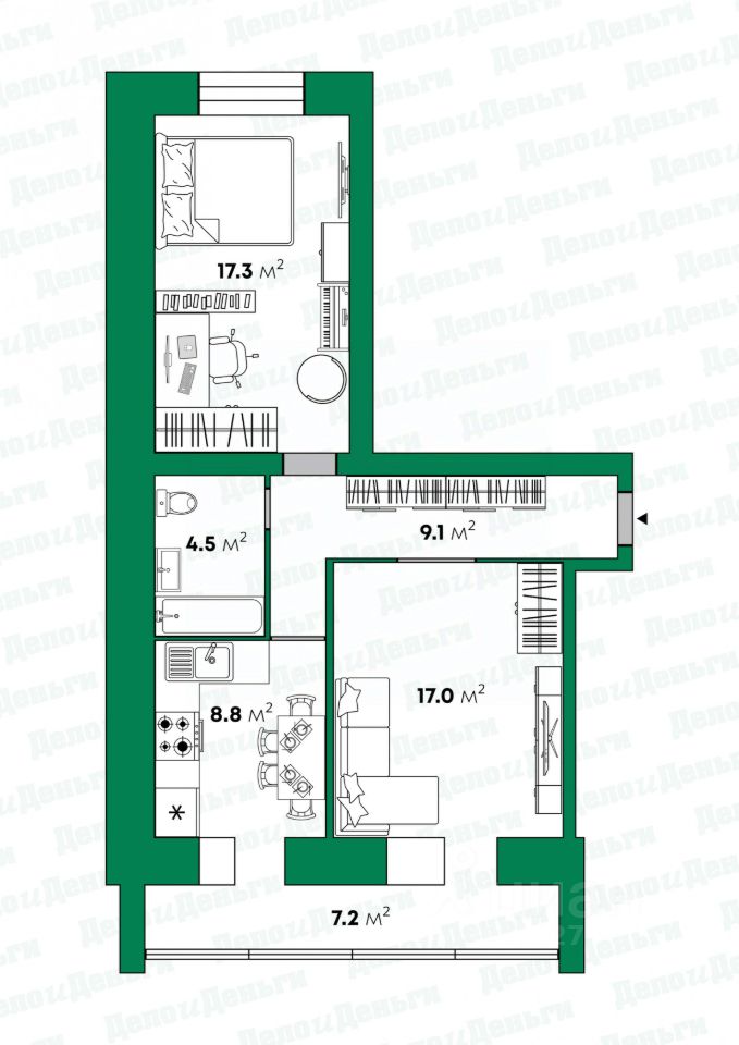Планировка: "Распашонка" — две изолированные комнаты для вашего комфорта.