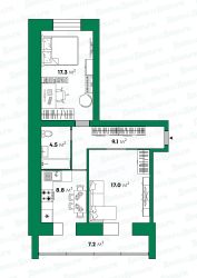 Комнаты: 17,0 м² и 17,3 м²