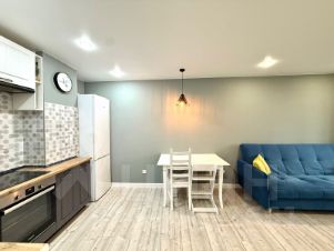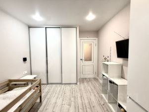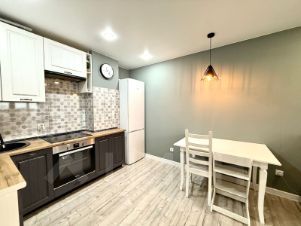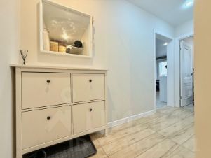 В квартире остается вся встроенная мебель, плита, вытяжка, дух шкаф, посудомоечная машина, встроенный шкаф в спальне, обувница, водонагреватель.