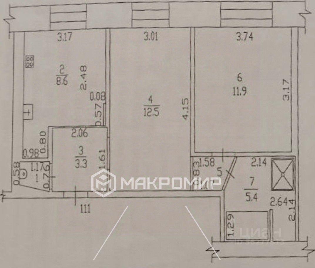 --- Квартира расположена на 4 этаже 5 этажного дома общей площадью 44 кв.м., жилой 24,4 кв.м, кухня 8,6 кв.м,.